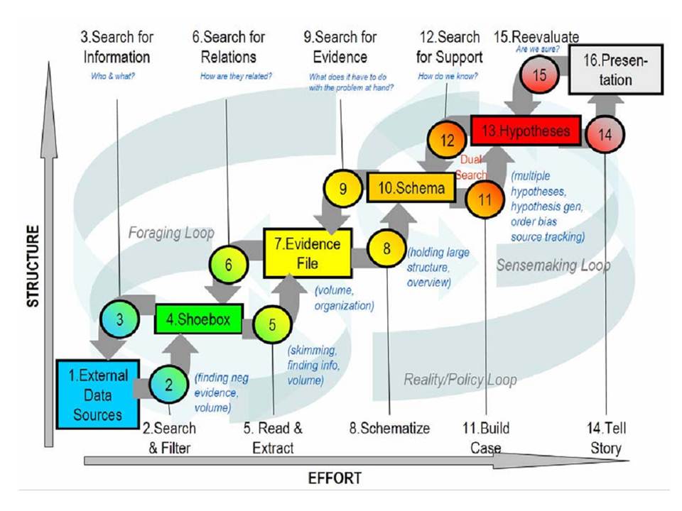 - Pirolli, P., & Card, S. (2005, May). The sensemaking process and leverage points for analyst technology as identified through cognitive task analysis. In Proceedings of International Conference on Intelligence Analysis (Vol. 5).
